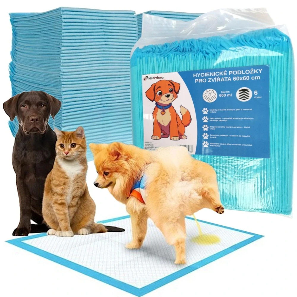 Hygienické podložky jsou skvělým řešením pro majitele domácích mazlíčků, jako jsou psi, kočky, králíci nebo křečci. Tyto podložky jsou neocenitelné při výcviku štěňat k čistotě. Můžete mu tím vštípit návyk, aby vykonával svou potřebu na těchto podložkách a za každé správné provedení ho odměňte. Jakmile si pejsek osvojí používání podložek, začněte postupně posouvat podložku směrem k dveřím a nakonec ji umístěte před dveře.V této fázi by mělo štěně již být schopno vykonávat potřebu venku. Jednorázové podložky se hodí k ochraně podlah, sedadel a pelíšků, stejně jako k vystlání klecí a toalet pro zvířata. Jsou praktickým řešením jak pro štěňata, tak pro dospělé psy, zajišťují čistotu a hygienu v okolí. Jsou užitečné pro starší psy se zdravotními problémy i pro každého mazlíčka během cestování nebo změny prostředí.
