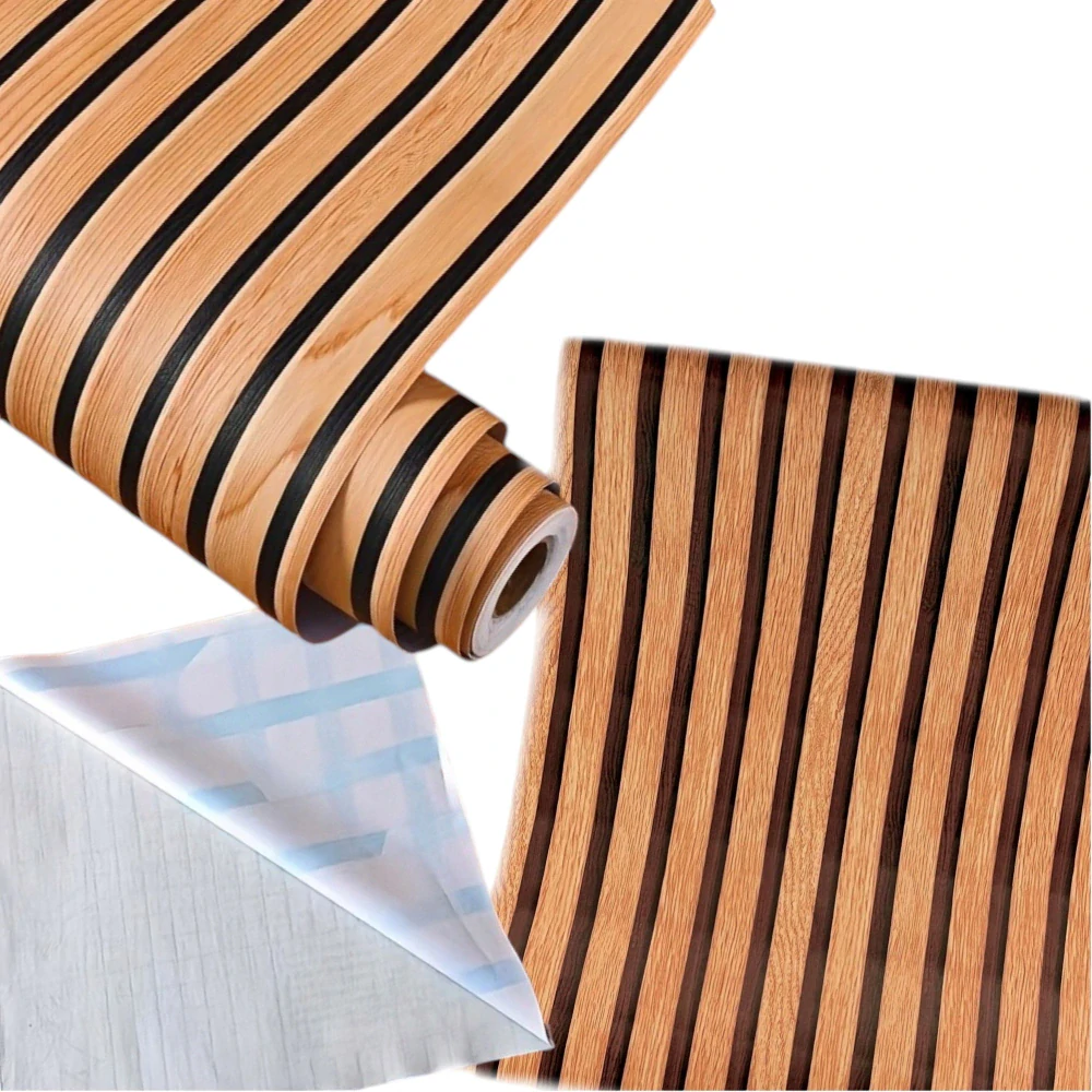 Rychlý způsob na moderní interiér? Tato samolepicí tapeta s realistickým efektem dřevěných lamel umožňuje během chvilky proměnit jakýkoli prostor. Ideální pro dekoraci stěn, nábytku, dveří či TV panelů. Dodá místnosti moderní a elegantní charakter – bez vrtání, bez prachu, bez lepidla.